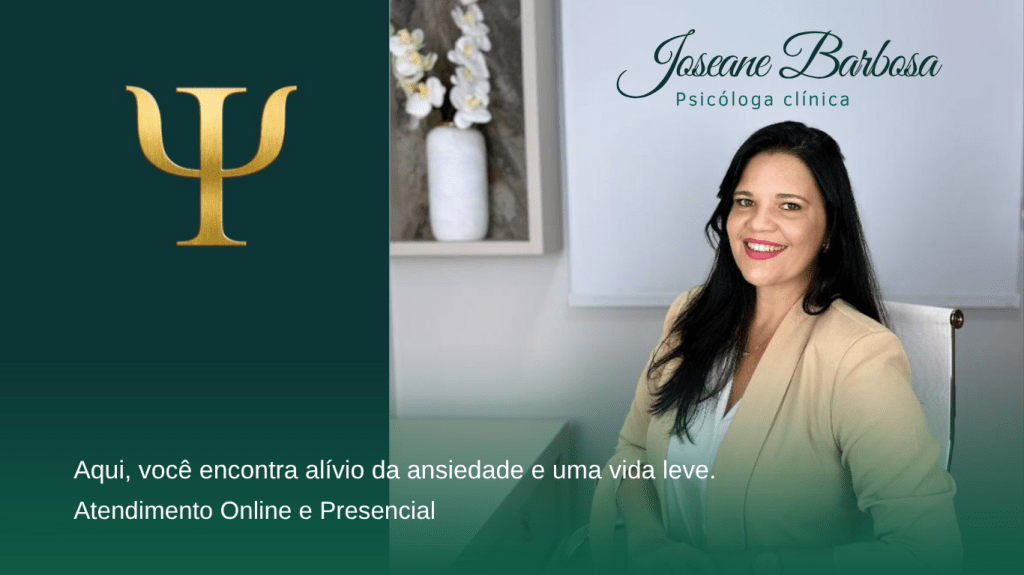 Sou Joseane Barbosa, psicóloga clínica, e atuo no desenvolvimento humano há 15 anos. Atendo adolescentes, jovens, adultos e idosos que enfrentam sofrimento psíquico relacionado à ansiedade, depressão e comportamentos compulsivos decorrentes da desregulação emocional. Sou graduada em Psicologia, especialista em Gestão de Pessoas e estou me especializando em Terapia Comportamental Dialética (DBT). Nos últimos anos, realizei mais de 20 mil atendimentos. Você pode conferir os depoimentos de quem já passou por aqui e entender por que meu propósito é ajudar você a conquistar uma vida mais leve, apesar do que tenha lhe acontecido, promovendo saúde emocional e bem-estar.